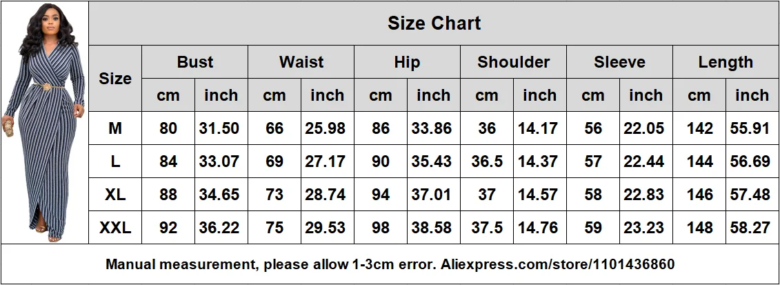 Indulge in elegance with the Filigree Stripe dresses for women. This new line boasts elegant, long bodycon dresses featuring a captivating V-neck and modest slits that exudes sophistication. This dress offers a unique and stylish statement for special occasions or everyday wear. Please follow the size chart. It may be a good idea to take the next size up!